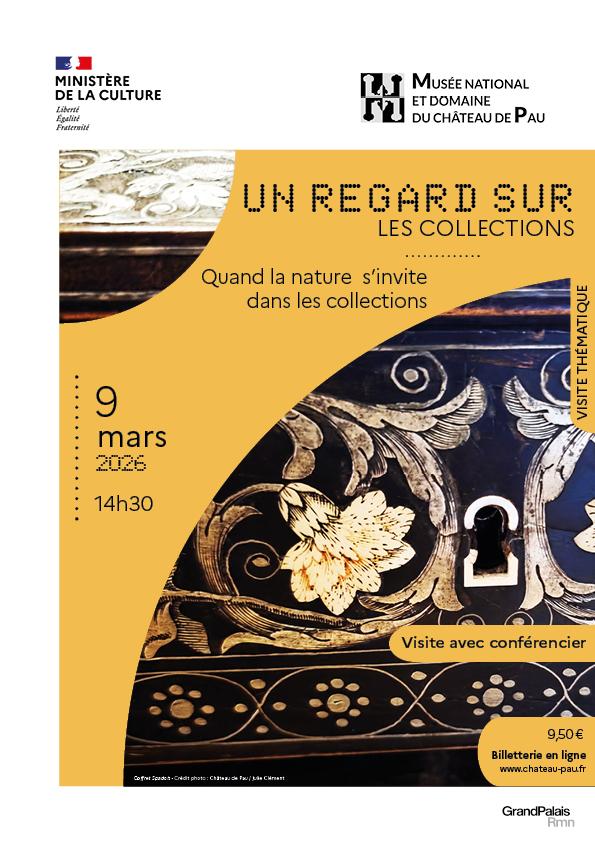 La nature, omniprésente autour de la forteresse médiévale, puis ordonnée en magnifiques jardins à la Renaissance, a fini par « entrer » dans le château, devenant élément de décor des appartements historiques, constituant le sujet de nombreuses tapisseries, érigeant des objets naturels en œuvres d’art ou encore utilisant le décor naturel pour porter l’image du roi Henri IV.