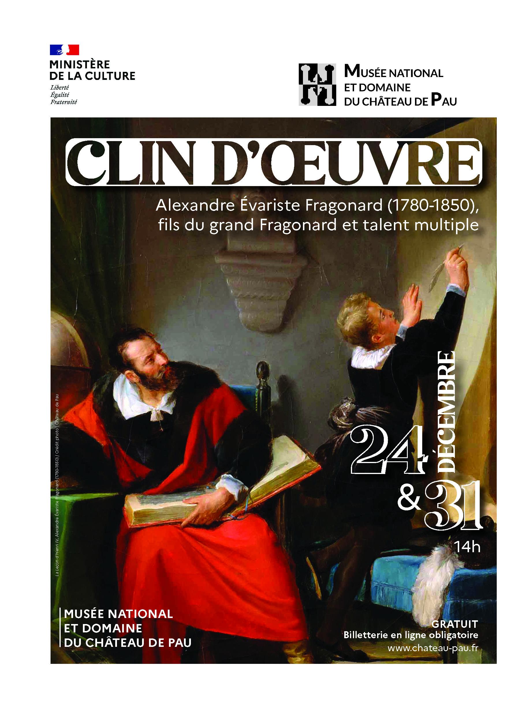 À la découverte de cet artiste très prolifique dans le domaine des arts graphiques, attentif aux progrès techniques de son temps et favorisé par tous les régimes. Sa peinture a souffert de la comparaison avec le génie de celle de son père, mais elle mérite qu’on s’y attarde. Les collections du château de Pau invitent à ce détour, au moment où « Fragonard fils » connaît son apogée, sous la Restauration.