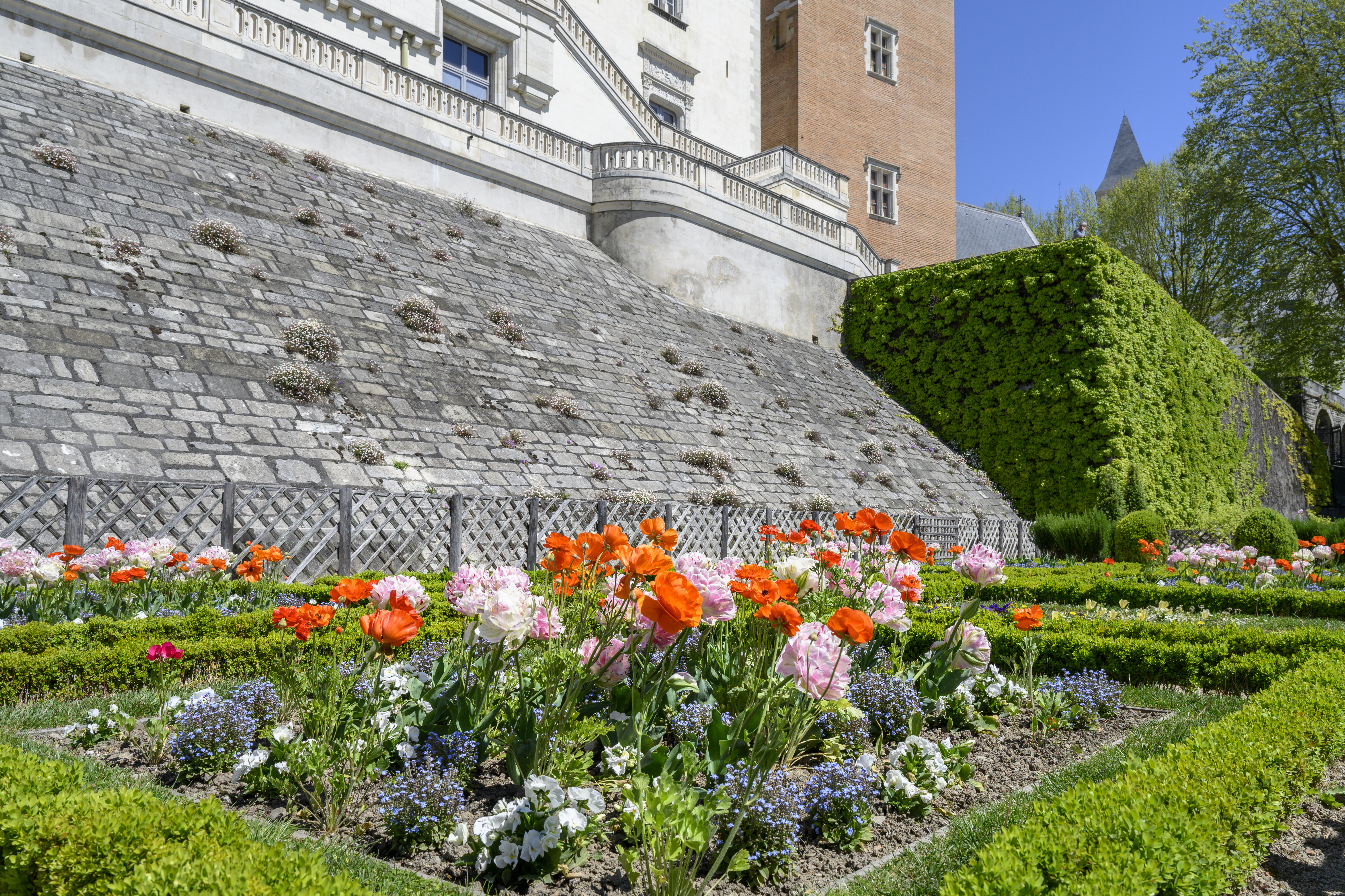 Les grands travaux qui bouleversent le château de Pau sous Louis-Philippe, commencent en 1838 par la construction d'un pont reliant le monument à la Basse-Plante. C'est assez dire que les projets de transformation n'oublient pas le domaine royal, bien au contraire. En témoigne un projet de grand escalier à double révolution qui devait permettre d'accéder directement aux jardins depuis le rez-de-chaussée Ouest du château, à partir de la salle des officiers de service : au pied du talus est alors bâtie une murette semi-circulaire au centre de laquelle est placée en 1864 une statue de Gaston Fébus en marbre des Pyrénées, œuvre d'Henry de Triqueti. L'escalier, par contre, ne sera jamais construit. Le parc fait l'objet de tous les soins : plantations, créations d'allées le transforment en véritable parc anglais. C'est alors un lieu de promenade romantique, particulièrement apprécié de la bonne société paloise, des artistes et de l'importante colonie anglaise qui s'établit à Pau vers le milieu du siècle.